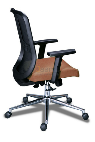 Кресло для персонала ТАЙМ RSJ ХРОМ ПАУК №40032 - высота спинки: 54 см, высота от пола до сиденья: 42-52 см, диаметр крестовины: 60 см, ширина спинки: 49 см, основание: металл, производитель: россия и снг, подлокотники, поясничный упор, регулировка по высоте, сетка в спинке, в наличии в Ульяновске.